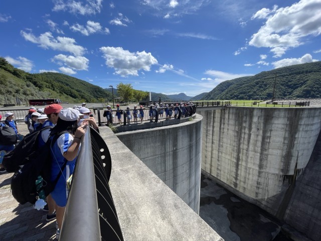 9月19日(金)に、県北浄化センター、摺上川ダム、すりかみ浄水場に見学に行きました。それぞれの施設の働きや水の循環について学習することができました。お昼は、青空の下で、ダムを見ながら友達と楽しくお弁当を食べました。