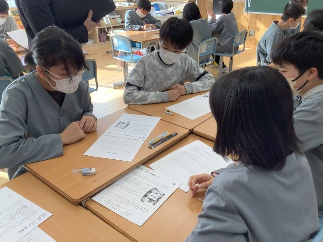 道徳科の授業で、権利について考える学習を行いました。マンションで隣家のピアノの音に悩むAさんと、ピアノの演奏が趣味のBさんの立場に立って役割演技を行い、解決の方法を考えました。自分の権利を主張することと、相手の権利を尊重することの折り合いをつけながら、じっくりと考える姿が見られました。