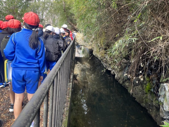 摺上川からの水が誘引される取水口や、伊達や桑折、国見、梁川の五十沢地区まで流れtれいく堰の様子、川を交差して下流に流すためのからくりなど、実際に目にすることで驚くべき工夫が見られました。現場を目にすることで、今後の授業がイメージしやすくなり、当時の作った人たちの苦労など思いを馳せることが出来ました。