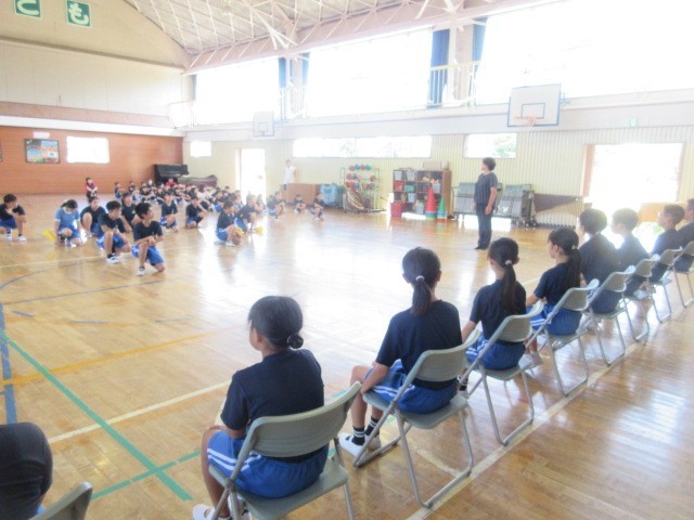 かがやきタイムは、9月25日(木)に行われる6年生伊達市児童陸上記録会へ向けての壮行会が、5年生を中心に全校生で行われました。