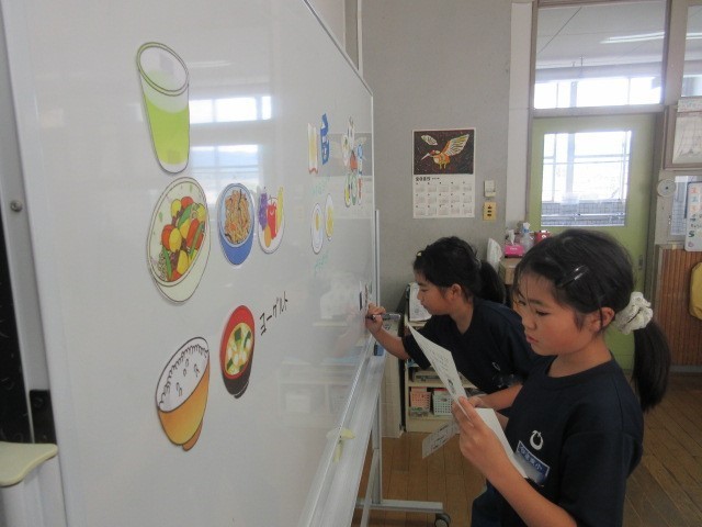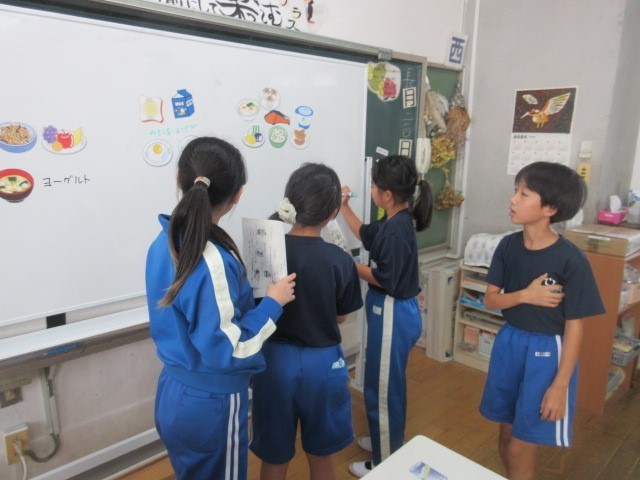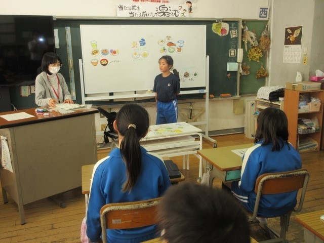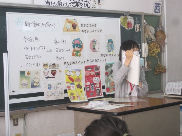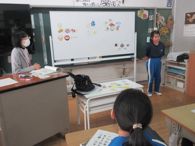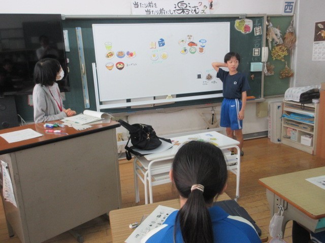 今回は、朝ご飯について学習しました。朝ご飯が「あたま・からだ・おなかのめざましスイッチ」になっていることを学び、自分の朝ご飯について振り返りました。
