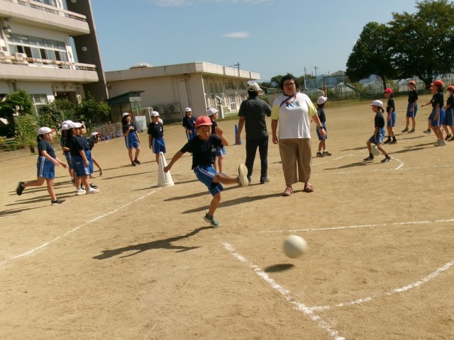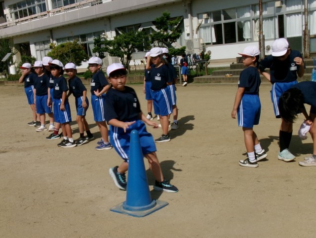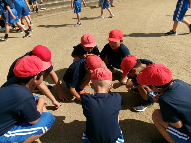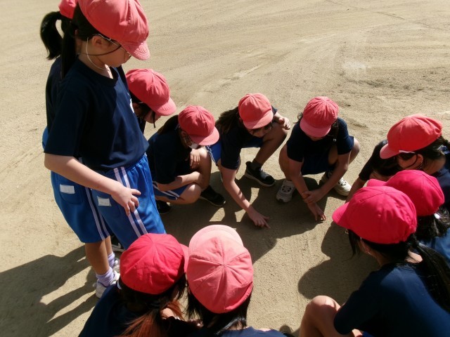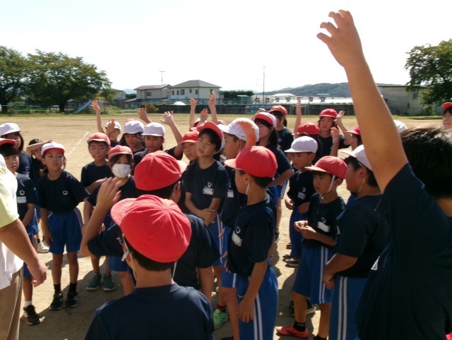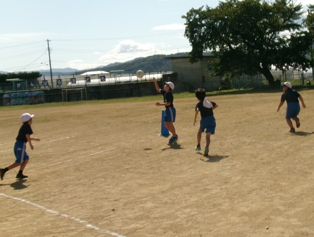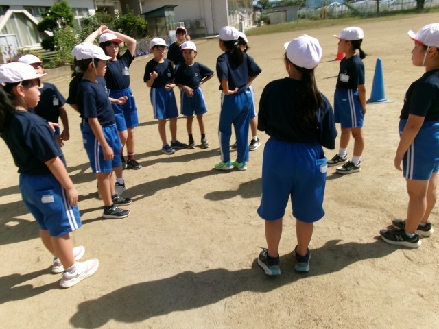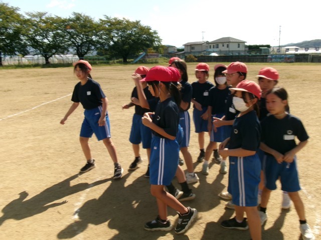 秋晴れのなか、3年生4年生合同で体育科の授業をしました。
