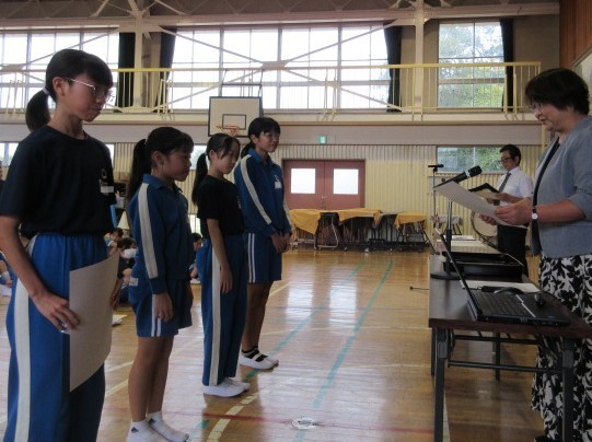 地区音楽祭や伊達市児童陸上記録会をはじめ様々なコンクールや大会で受賞した子供たちを表彰しました。