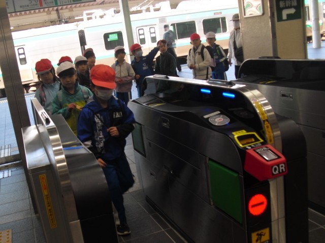 自分たちで切符を買って電車に乗り、福島市の公共施設に出かけます。