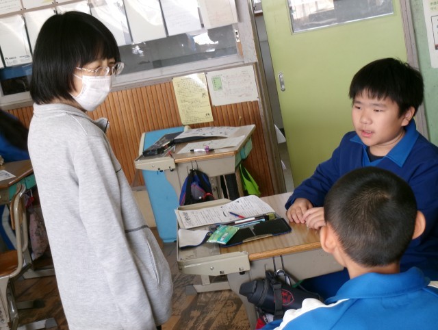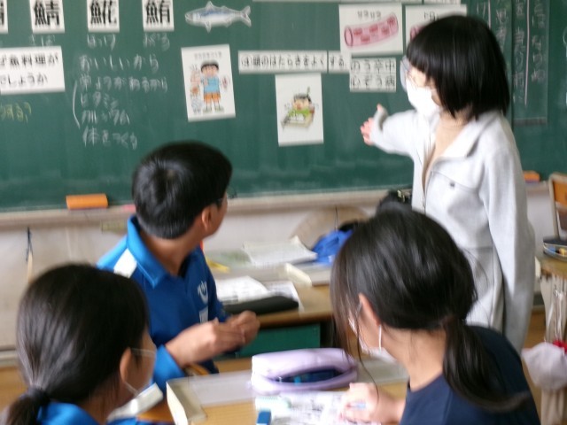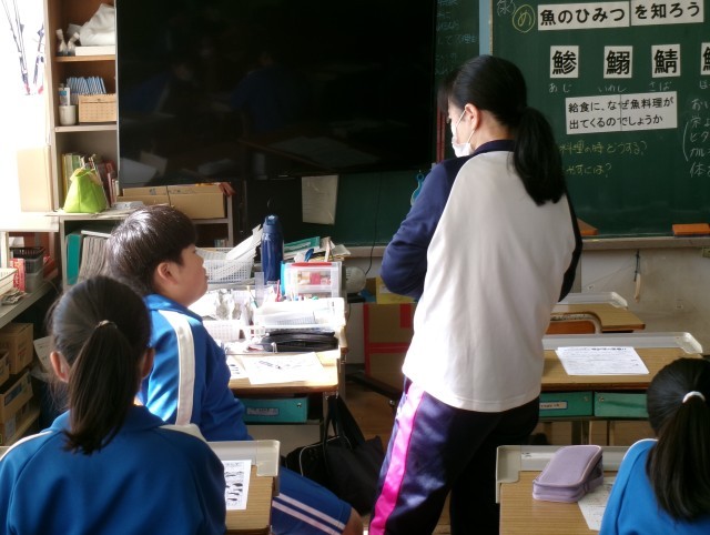 今日の栄養教室は「魚の秘密」。魚には成長に必要な栄養が多く含まれていることを学んだ5年生。