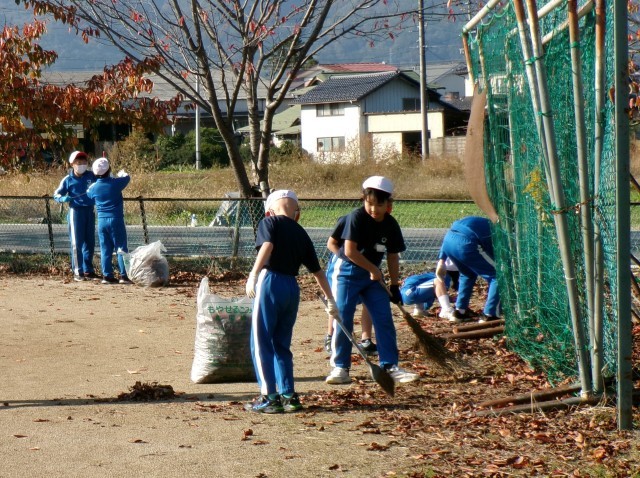 伊達東交流館・水雲神社・馬頭観音・こども園…。落ち葉拾いやゴミ拾い、窓ふきなどを、みんなで協力して行いました。