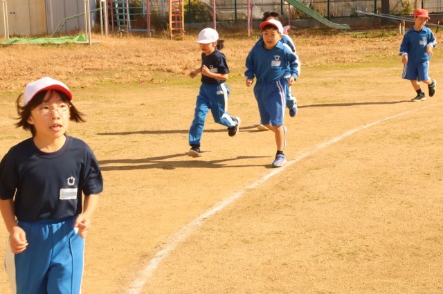 感染症予防のため、ブロックごとに開催した持久走記録会。
