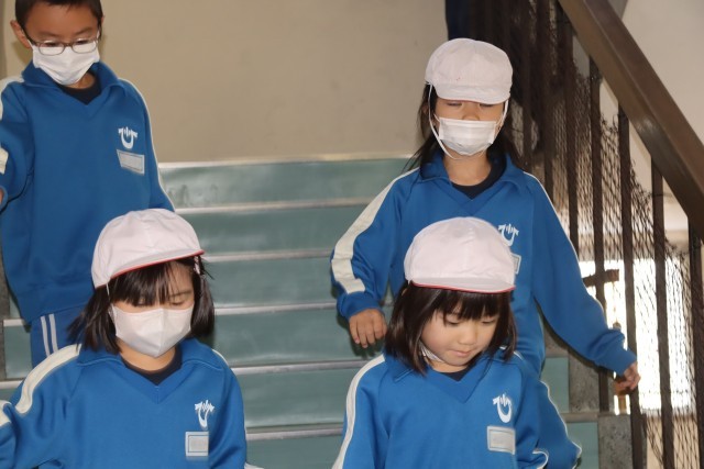 休み時間に大きな地震が起きたと想定し、避難訓練を行いました。