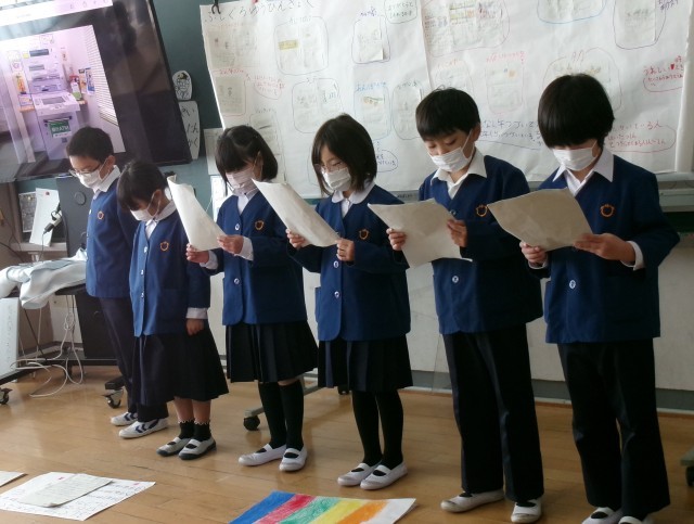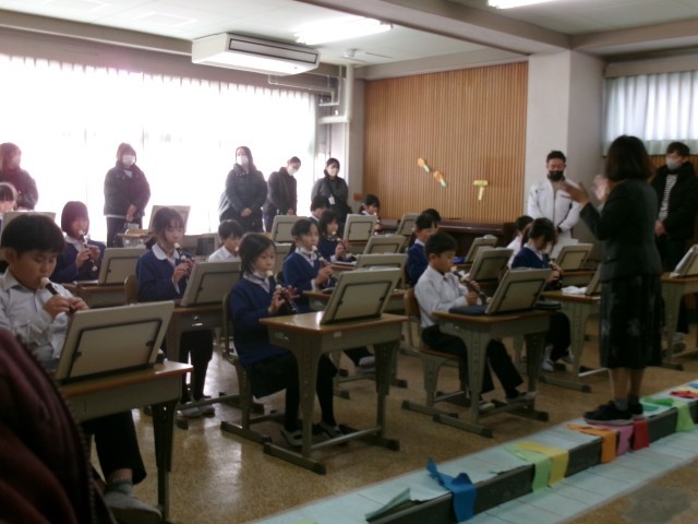 1年生は「秋を楽しむお祭り」を、2年生は「町探検の発表」を、3年生は「リコーダー演奏」でがんばる子どもたちを見ていただきました。