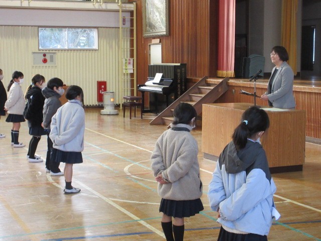 代表児童による「冬休みの思い出と3学期にがんばりたいこと」の発表からも、強い決意が感じられました。
