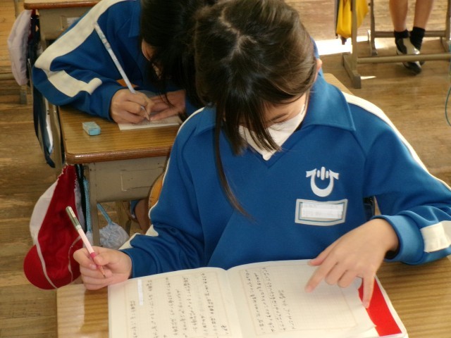 友達がノートに書いた紹介文をお互いに読み合い、感想を書き込みます。