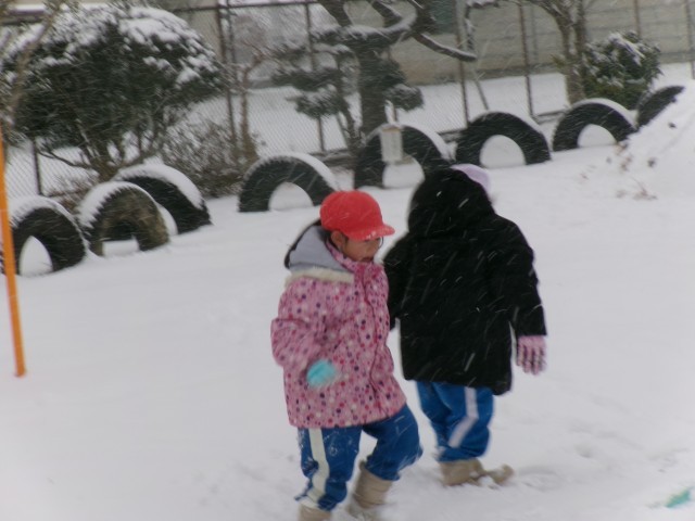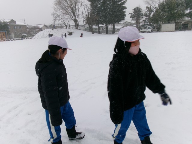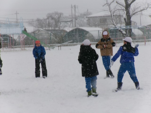 たくさんの雪に大喜びする子どもたちです。
