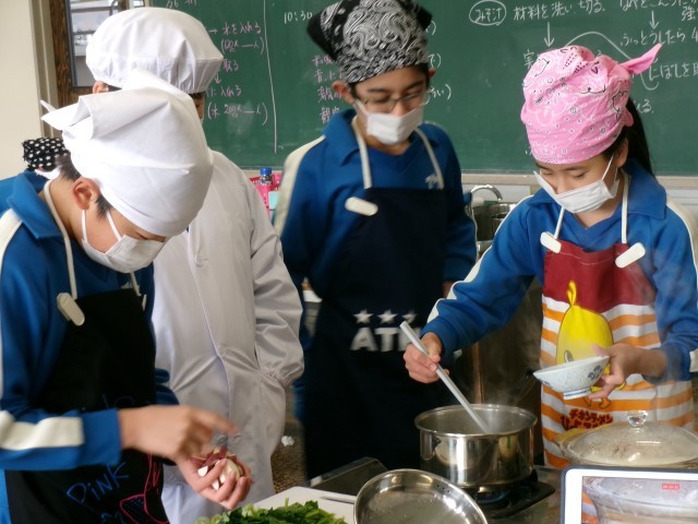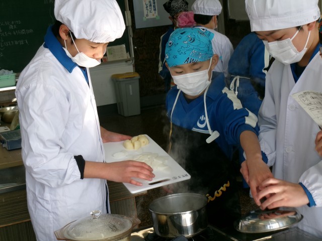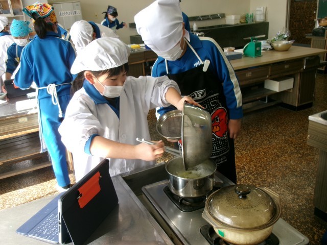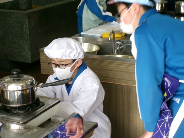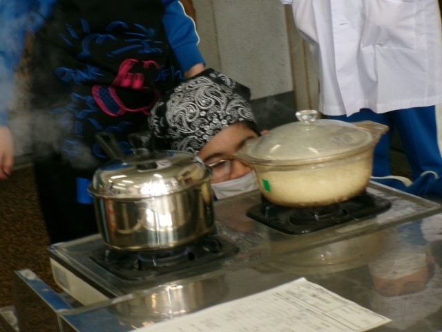 班のみんなと協力して、ご飯とみそ汁をつくりました。