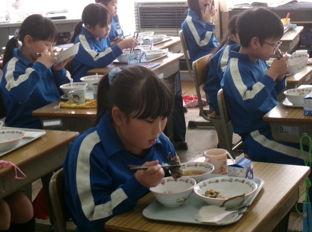 食器を持ち背筋を伸ばして、おいしくいただきました。