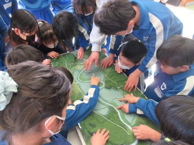 洪水被害を防ぐため遊水地がつくられていることを知り、驚いていました。
