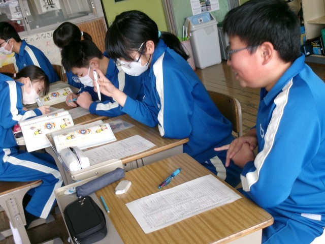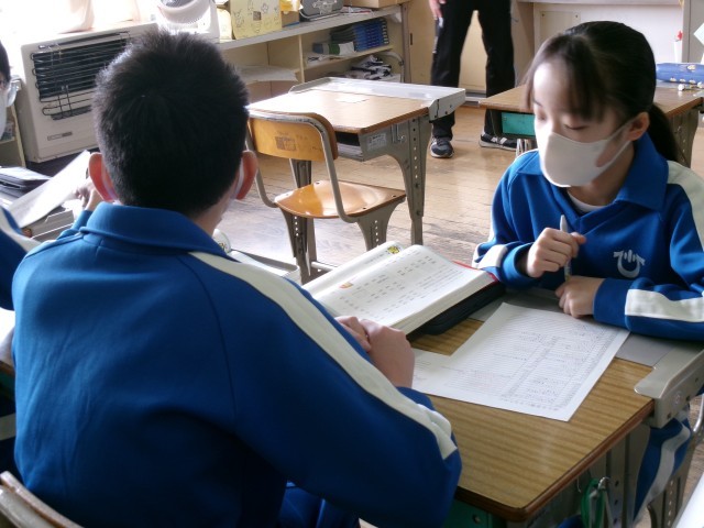 ペアになり、ふだんの生活ではあまり使わない言葉の意味を考えています。