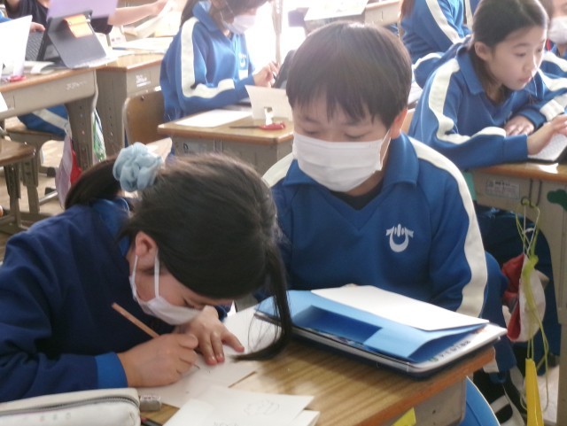 わたす相手のことを思い浮かべ、相談しながら感謝の気持ちを伝えます。