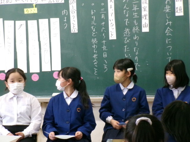 3年生全員が楽しむ会にするには...。考えを話し合い、決めていきます。