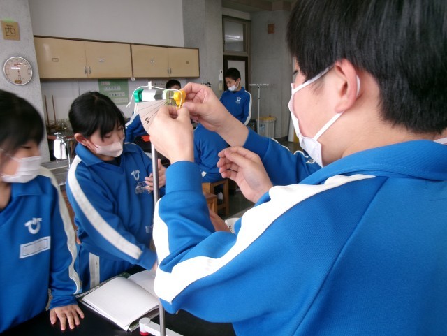 ふりこの実験。ひもの長さのによって、どう違うのかを調べます。