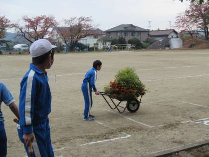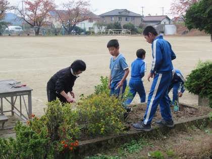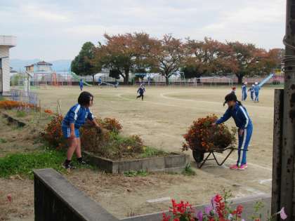 栽培委員会のみんなが花壇の模様替え。