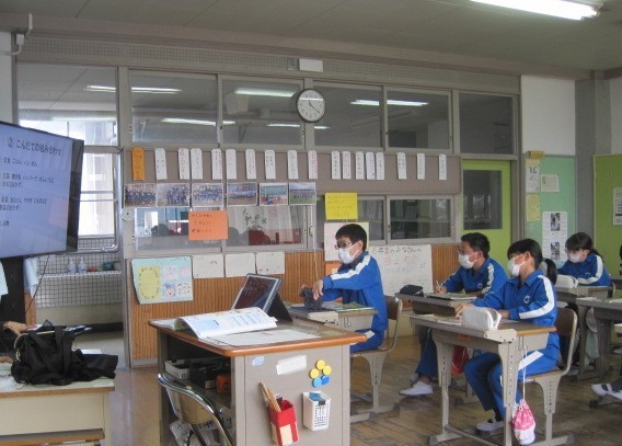 4年生は、国語科の学習で「伝統工芸品」を調べ、タブレットを活用しながらリーフレットにまとめていました。文章に写真やイラストを加え、すてきなリーフレットを仕上げていました。