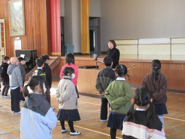 2学期に各学級で話し合って決めた「やくそく」について、守れたかどうかを振り返りました。自分たちの2学期の成長を感じるとともに、3学期にさらに頑張っていくことを確認しました。代表児童による2学期がんばっ...