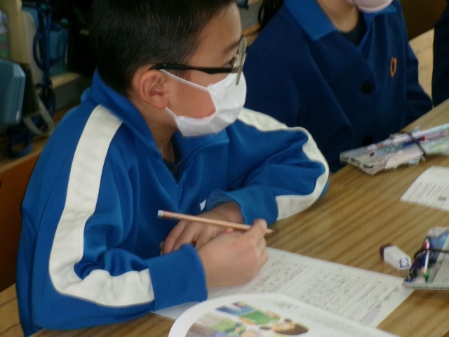写真の情景が分かるように文に書き表すため、資料となる写真からいろいろな情報を読み取ります。見つけた情報をさまざまなペアで確認し合い、さらに深く資料写真を分析していきます。