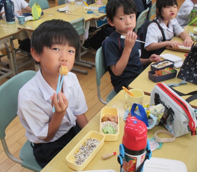 今日もおいしいお弁当、ありがとうございました!「おいしい顔してみて♪」とお願いすると、みーんないい顔してくれました!10月はお弁当の日がなんとあと3回ありますので、また愛情たっぷりのお弁当、よろしくお願いします♪