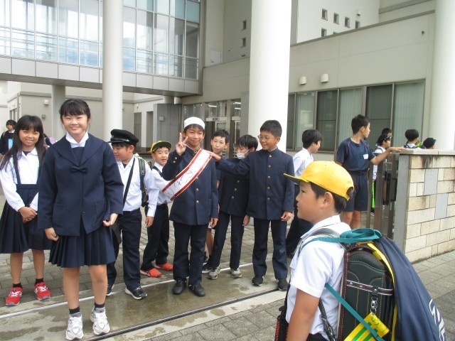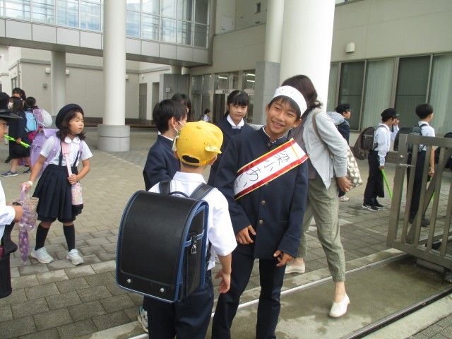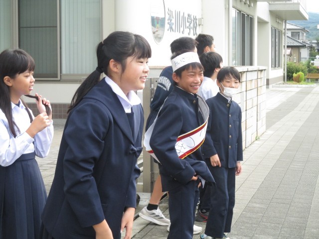おはようございます♪元気な声が聞こえてきそう。10月は、ボランティア委員会によるあいさつ運動が繰り広げらる模様。たすきもかぶりものも自分たちのアイディアなんですって。お昼の放送では「今日のあいさつチャンピオン」が発表されたよ。朝からあいさつするのが楽しくなるね。