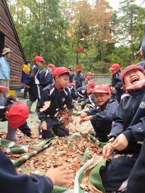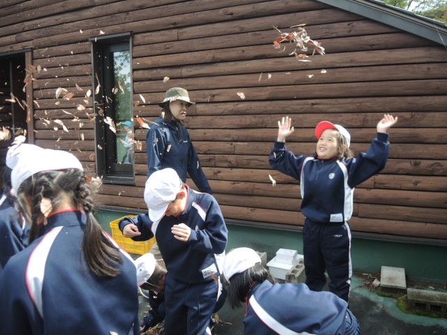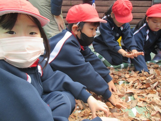 どのような食べ物が『ごちそう』なのでしょうか。みんなで勉強した後は、落ち葉のプールで『ごちそう』探し!