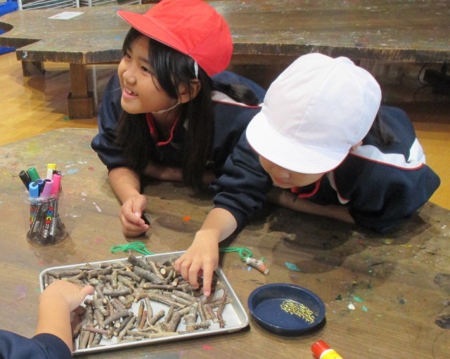 ミュージアム内ではワークショップを体験!木の枝を使って作ったモックンは力作ぞろい!かわいいマイモックンを持ち帰りましたので、見てみてくださいね♪