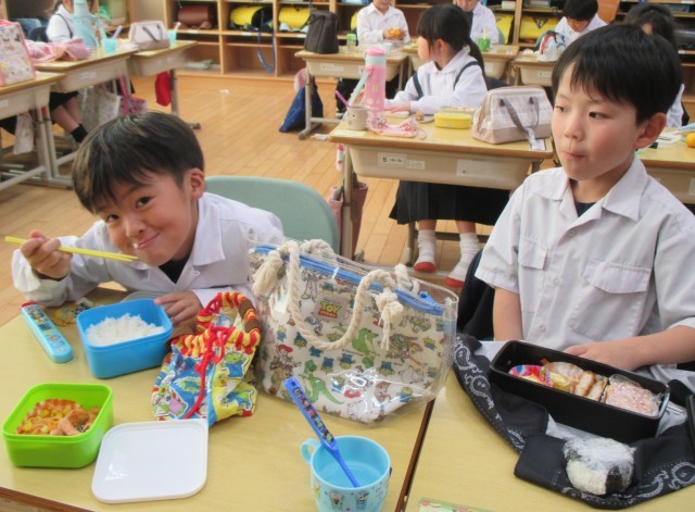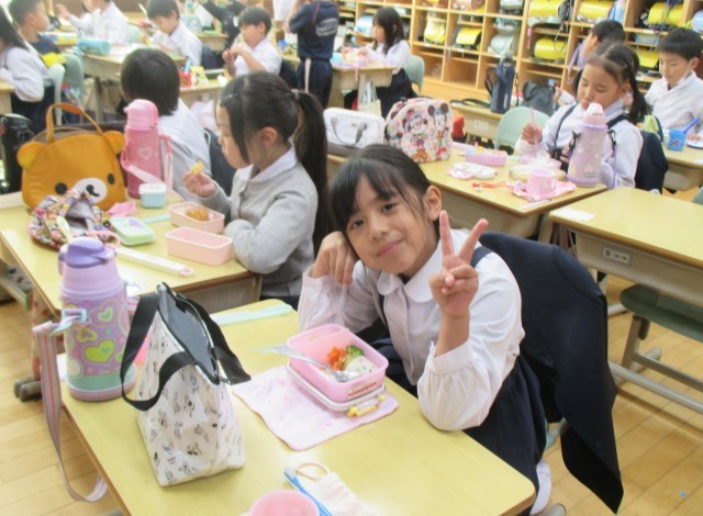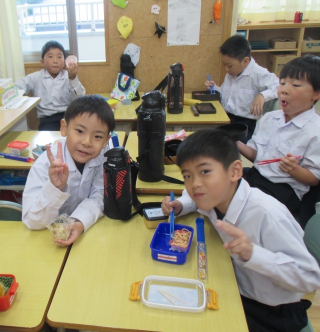 こちらもおうちの方が心をこめて作ったお弁当を、みーんなおいしそうに食べていました♪お弁当の日はうれしくって、いくら時間があっても足りないくらいです。もちろん今日もおいしく、楽しく食べることができました。ごちそうさまでした!