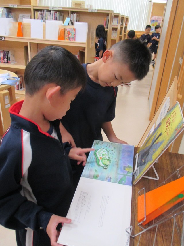 今日は木曜日。1年生は1時間目に、新しい本を借りに図書室へ!すると、おすすめの本のコーナーにおもしろそうなそらまめくんの本があるではありませんか!いい本にめぐりあえたね♪