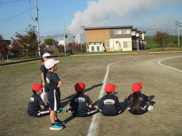 いつもは教室にいるはずの朝の時間に、1年生が勢いよく校庭に飛び出していきました!今日は特別、校庭で「ウォーミングアップをしよう!」ということになったのです!最後は6年生も一緒に走ってくれて、なんだかうれしい朝になりました♪