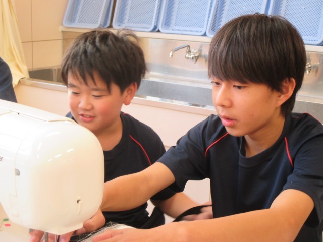 5年生が家庭科で取り組んでいるトートバッグも、間もなく完成!突然調子の悪くなるミシンと上手に付き合いながらここまできました!いよいよ大詰めです!