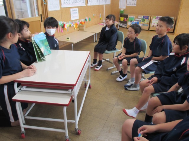 3年1組のみんなは、1年生に本の紹介を兼ねて、読み聞かせをしました。3年生が来てくれるなんて!1年生はちょっと緊張気味でしたが、このような交流って大事ですよね。来週は3年2組のみんながお邪魔します!