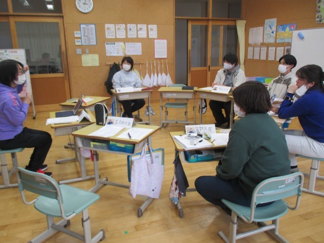 子どもたちが帰った後、先生たちはいろいろな仕事をしていますが、今日は先生方が子どもたちになりきって、模擬授業をしていますね。先生たちは45分間の授業を大切にしています!