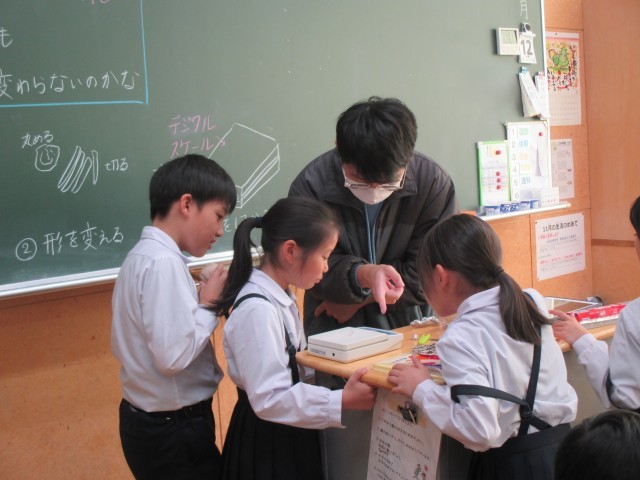 3年1組の理科は重さの学習中。粘土って、形が変わると重さも変わるのかな。どうだろう。変わりそうだけど。変わらない?やっぱり理科っておもしろいですよね!