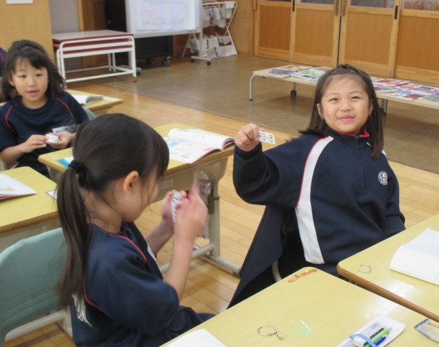 今日はくり下がりのあるひき算を、計算カードを使って学習しました。「ひき算、難しい」そんな声が聞こえてきますが、毎日の練習の積み重ねが大事です!すごくがんばったら、がんばりカードに花丸かいてくださいね♪
