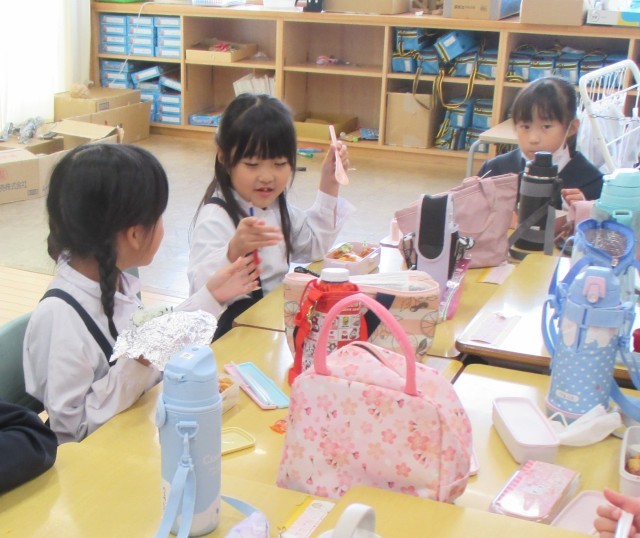 こちらは先月のお弁当の時間の1コマです。明日はいつも楽しみにしているお弁当の日!おいしいお弁当、待ってます♪そうそう、明日は全校生一斉の早い下校ですので、下校後の過ごし方の方、よろしくお願いします。