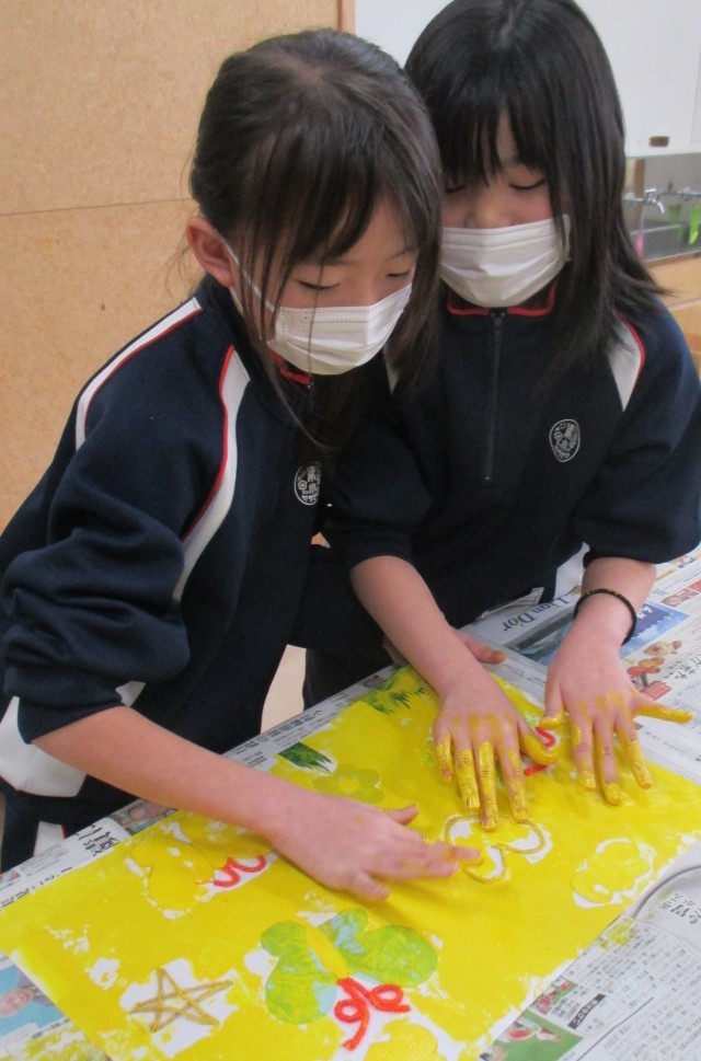 今日の図画工作科は紙版画の印刷の時間!上手に印刷できるかな…。ドキドキ、ドキドキ。さあ、出来映えはどうだったかな!?