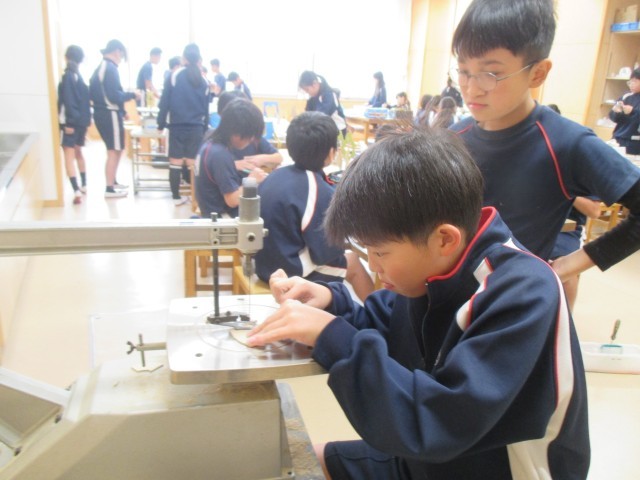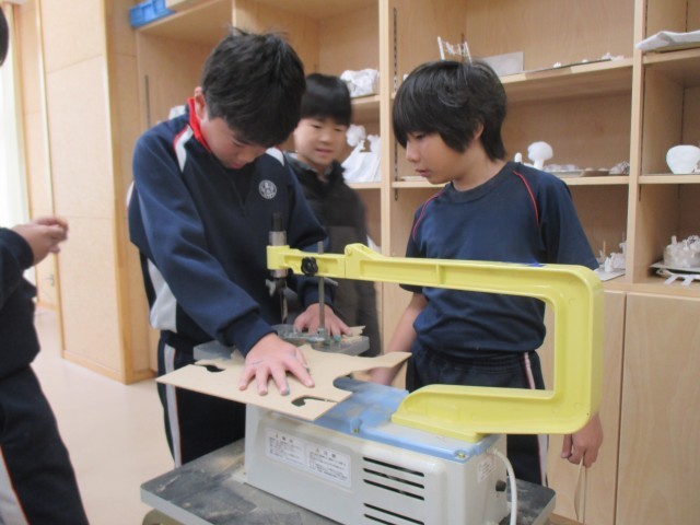 5年生の図画工作科では、糸のこを使った作品づくりに挑戦中!見てください、この糸のこさばき!どんな作品ができあがるのか、乞うご期待!