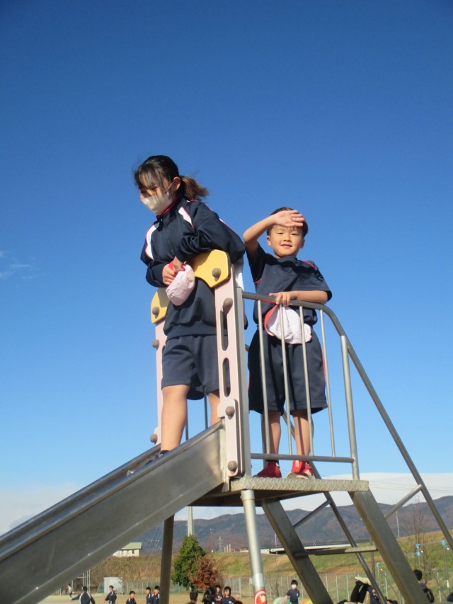 今日もいい天気になり、外遊び日和!よーく見てみると、上学年のお兄さん、お姉さんが、小さい子たちと遊んであげています!これって梁小のいいところだね♪