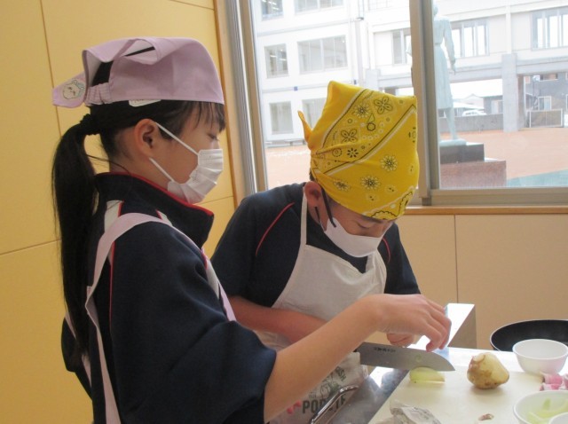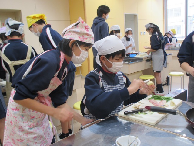 2組に続き、今日は3組が1食分の献立作り。おっ、学習したことがしっかり生かされてる!何でも一生懸命、それが3組のいいところだね♪
