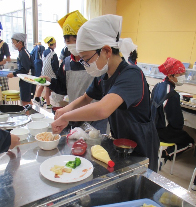 調理実習のトリは6年1組。見てください、この盛り付け!バランスのよい1食分の献立ができたことがお分かりですよね♪60分間のみんなのがんばりは、今後にしっかり生かされそうですね!