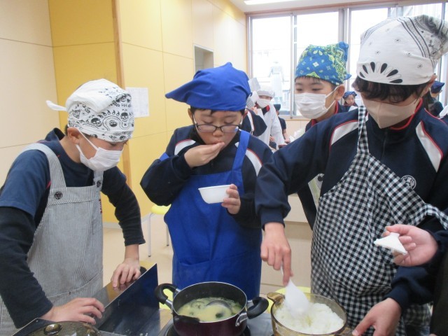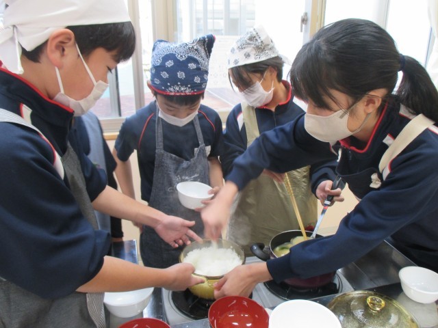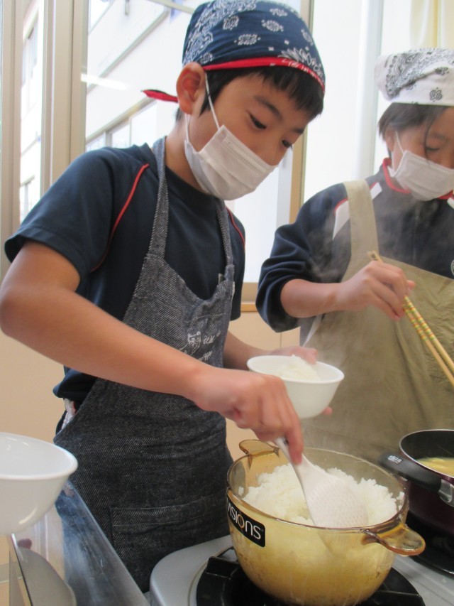今日は1組の調理実習。鍋でご飯を炊くというやったことのない体験にハプニング続出!鍋の火が消えたり、途中で蓋を開けてしまったり…。でも、どの班もおいしくできたんです!奇跡に感謝!