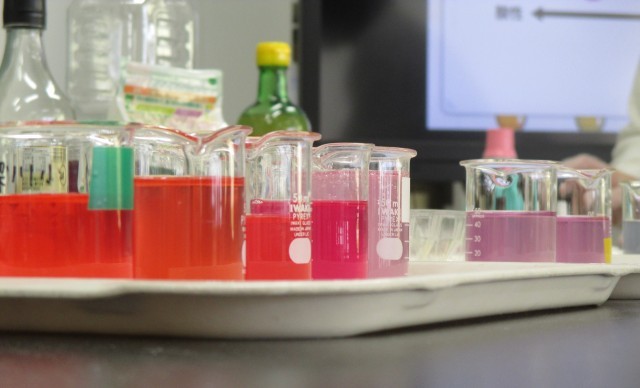 水溶液の性質は、リトマス紙なんて特別な紙じゃなくても、身近なもので調べられるんです!それがこの紫色の液体!さあ何でしょう!?それにしても、なんというきれいさでしょう!科学の不思議です!
