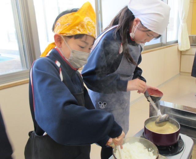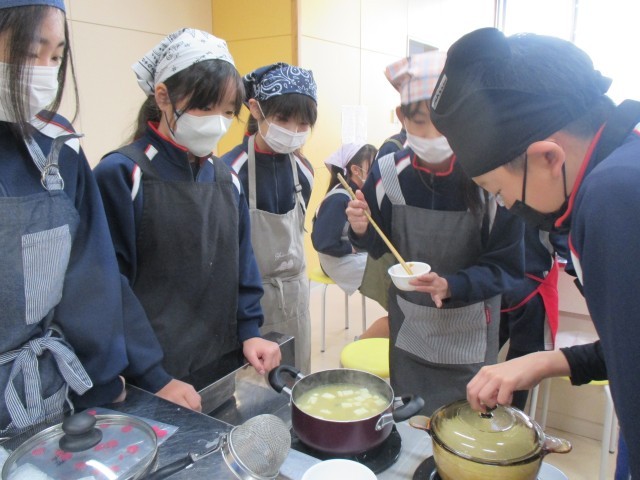 今日の調理実習は、5年2組のよさが発揮された実習でした!なんと言ってもチームワーク!ちょっとくらいスタートが遅れても、あっという間に目標をクリア!もちろん味もバッチリでした。ご家族のみなさん、ご飯作りはお任せあれ!