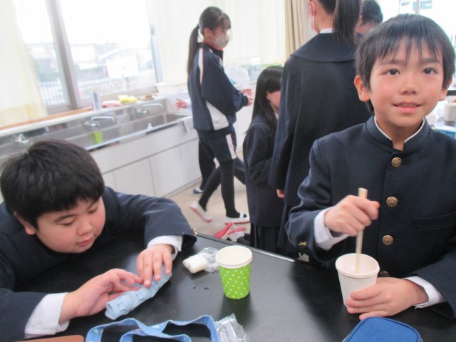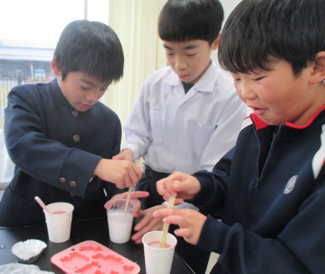 おっ、今日は石けん作りですね!自分の好きな色や形の石けんを作れるなんて。「やってみたいな~」と思った人は、来年度このクラブをおすすめします♪