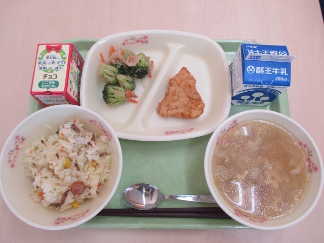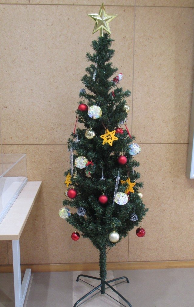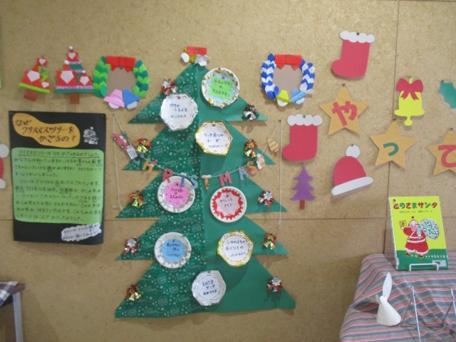 図書室の掲示板、コミュニティ前のツリー、そしてクリスマス献立!いよいよクリスマスシーズン、到来ですね♪